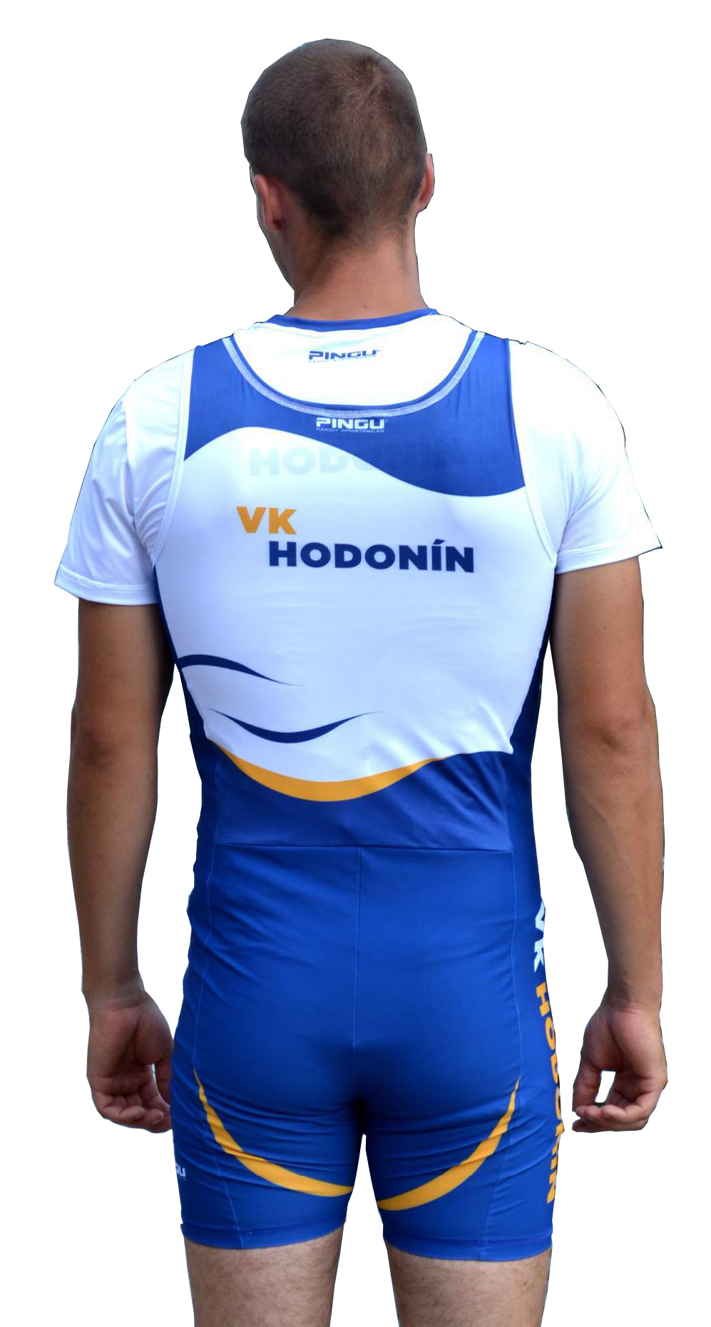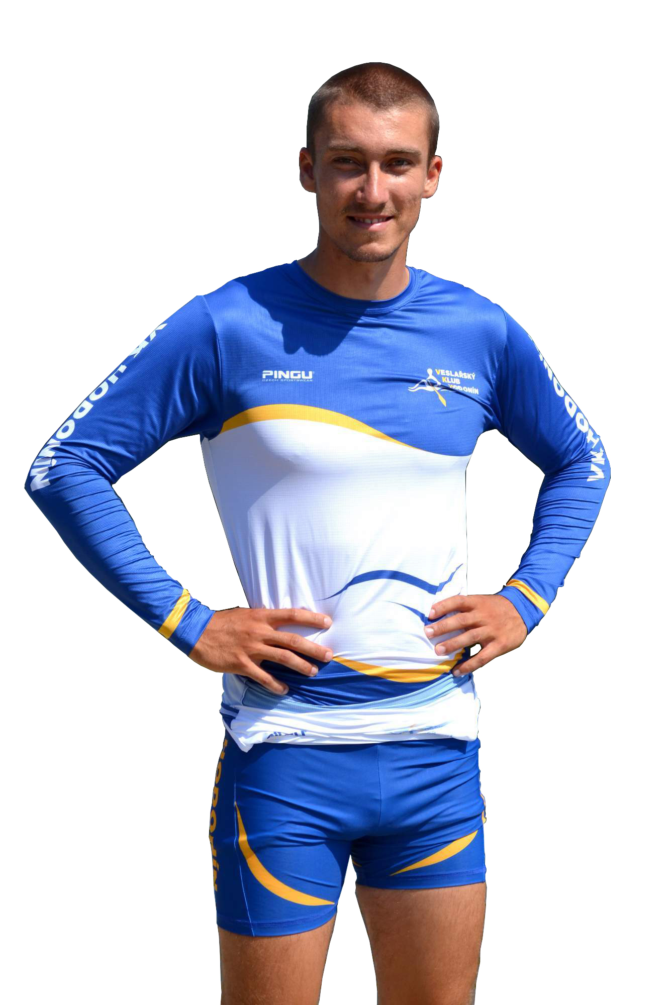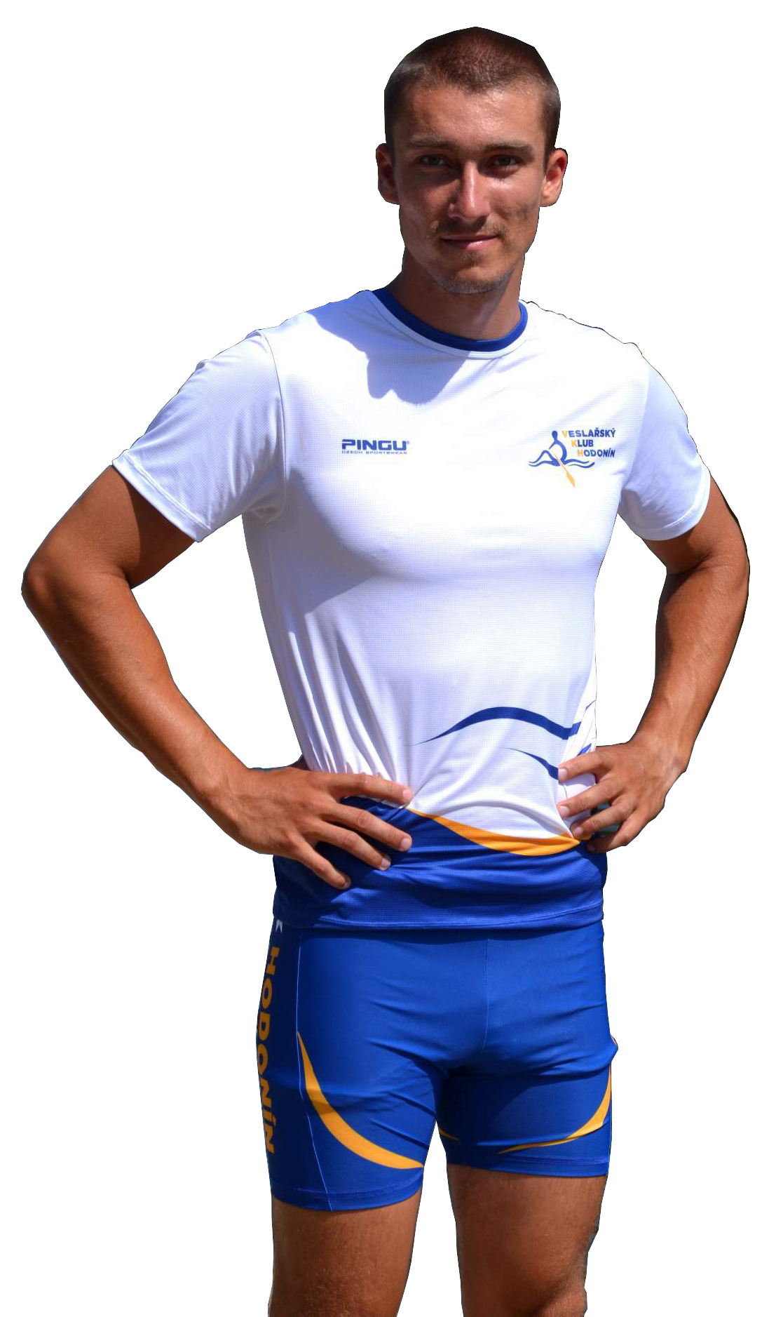 Kompletní sada sportovního oblečení Veslařského klubu Hodonín. Sada se skládá z tréninkového trika (krátky + dlouhý rukáv), trika s límečkem, závodní kombinézy, veslařské vesty, dlouhých elastických kalhot, softshelové převlekové soupravy (bunda + kalhoty) a teplé mikiny s kapucí.